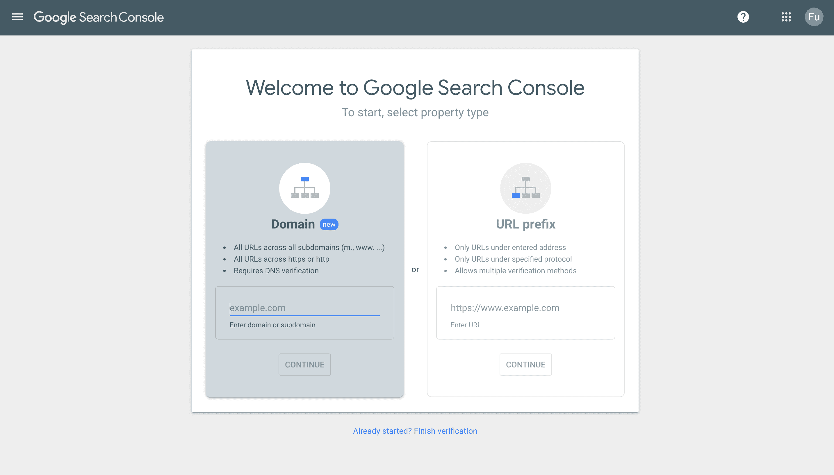 Key in your domain (on the right) and click continue.