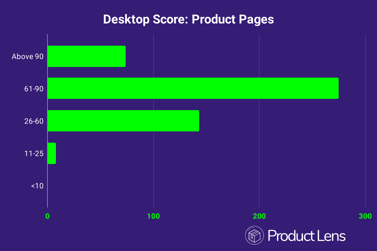 The median page speed score on desktop is 23 for product pages.