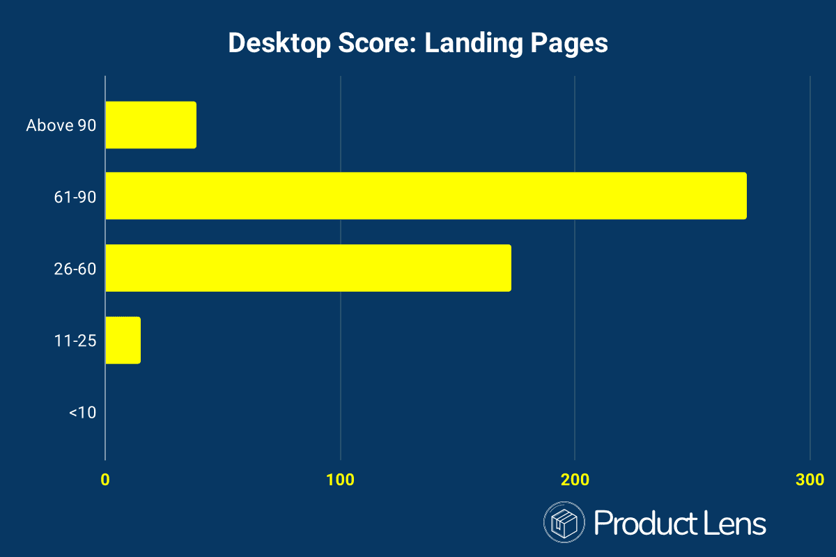 The average page speed score on desktop is 67 for landing pages.
