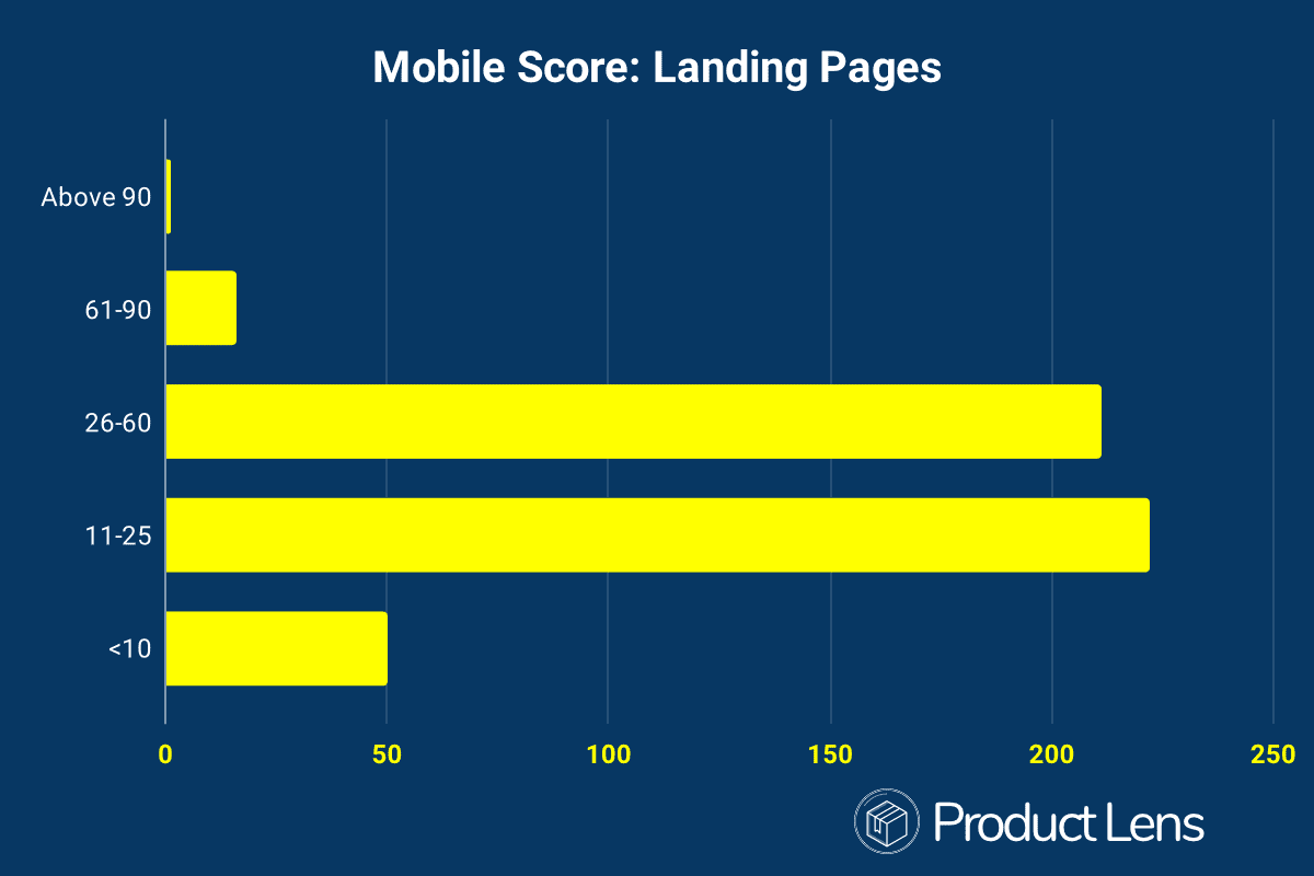 The average page speed score on mobile is 27 for landing pages.