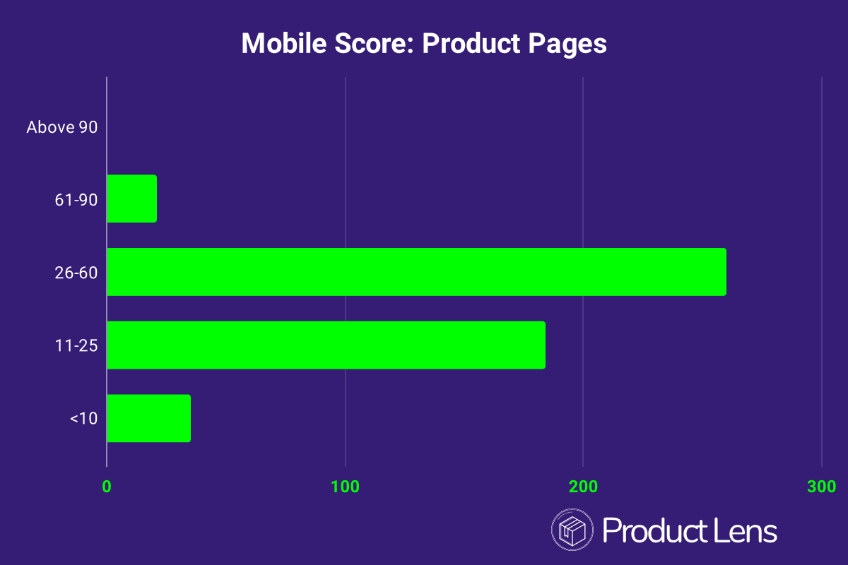 The median page speed score on mobile is 27 for product pages.